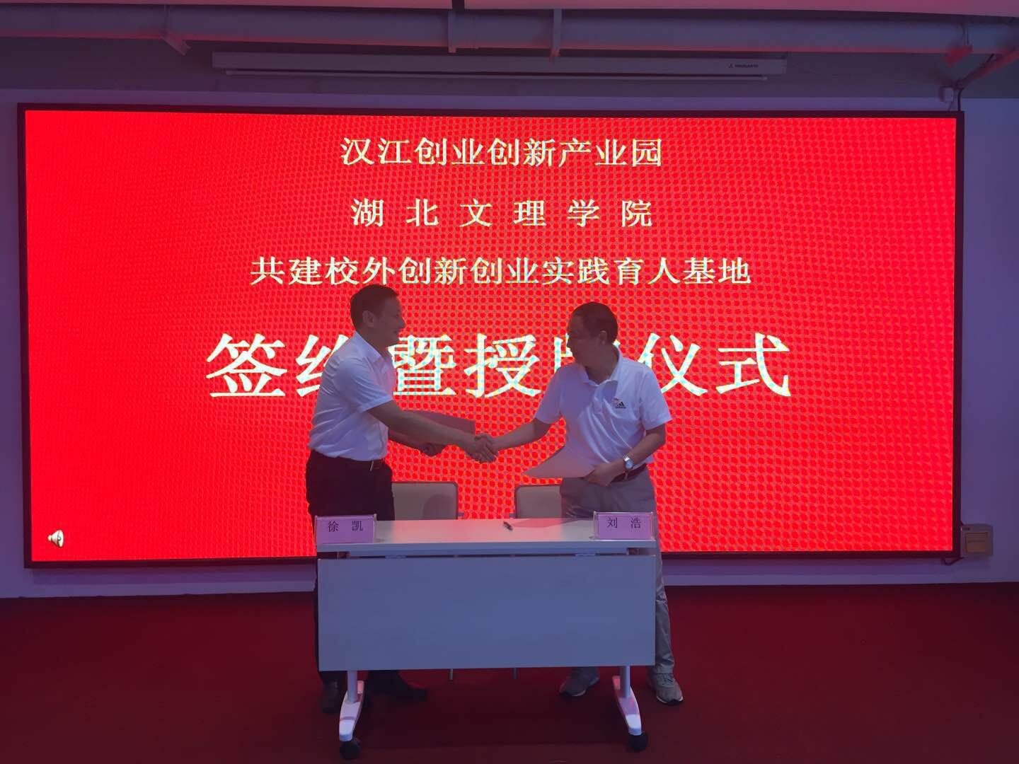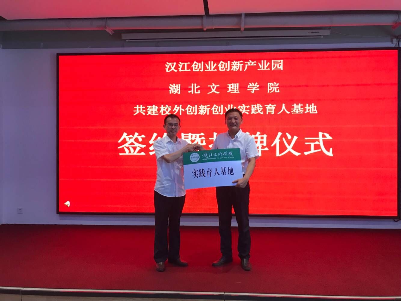 —--汉江创业创新产业园共建校外创新创业实践育人基地”签约授牌仪式在汉江创业创新产业园隆重举行。高新区人社局领导许勇智,产业园区总经理徐凯、党总支书记王俊波,麻豆传媒