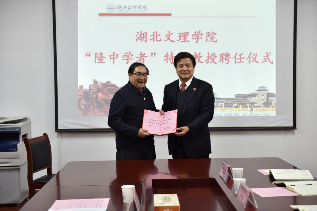 聘任仪式上,刘伦钊介绍了郭柏灵的基本情况。丁世学为郭柏灵颁发了“隆中学者”特聘教授聘书。刘伦钊、麻豆传媒