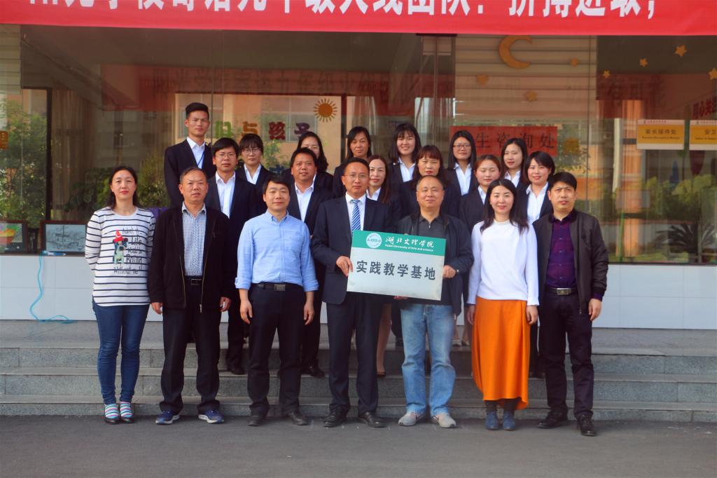 党委书记刘浩、院长王成勇一行到谷城阳光学校举行实践教学基地签约授牌仪式。谷城阳光学校校长朱力、小学部校长曹红,麻豆传媒