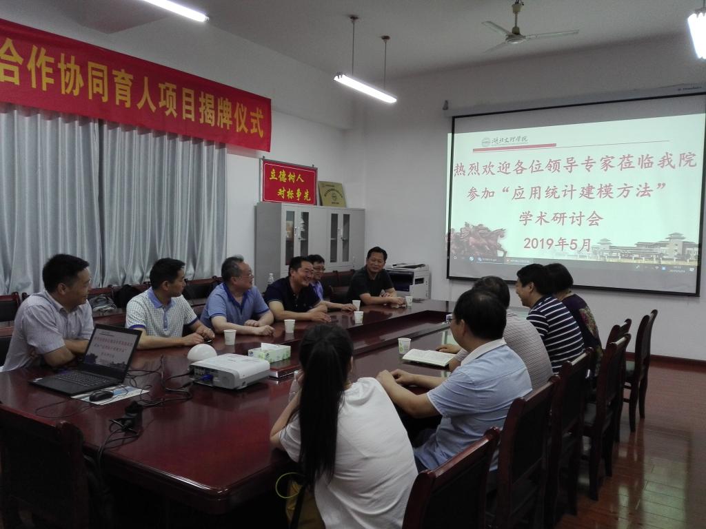 指导单位华中科技大学王湘君教授、李楚进副教授、廖俊俊副教授,武汉理工大学陈家清教授,我院对标单位湖北师范大学姜国副教授、中南民族大学汪宝彬副教授,一行六位统计学专家受学院院长王成勇教授邀请莅临我院,举行主题为“应用统计建模方法”的小型学术研讨会,研讨会由受邀的六个学术报告和本院的两个学术报告组成,上午下午各四场报告。研讨会由院长王成勇教授主持,统计相关学科专业教师团队参加了学术研讨会。