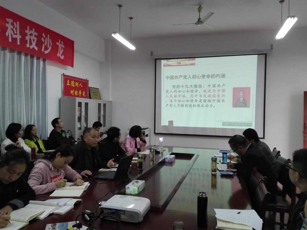 在学院会议室召开“不忘初心、牢记使命”主题教育学习会暨10月份教职工政治理论学习。会议由学院党委书记刘浩主持。