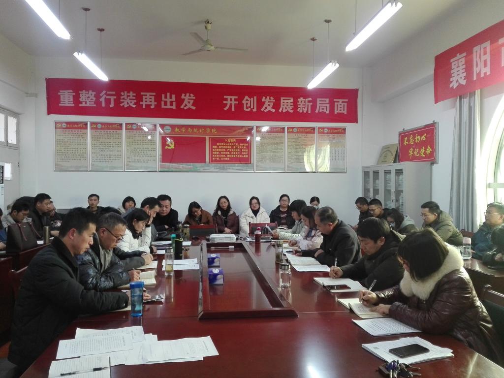 会上,党委副书记姚威领学《习近平在中央全面依法治国工作会议上的讲话》;副院长丁凌领学《习近平在全国劳动模范和先进工作者表彰大会上的讲话》;副院长张旻嵩领学《中共湖北省委十一届八次全会精神》;团委书记卢京希领学《中共襄阳市委十三届十一次全会精神》。