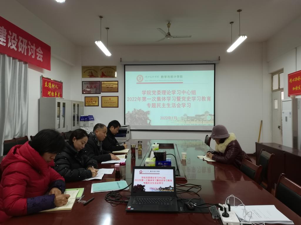 在学院会议室举行党委理论学习中心组2022年第1次集中学习暨党史学习教育专题民主生活会学习。会议由党委书记刘浩主持。