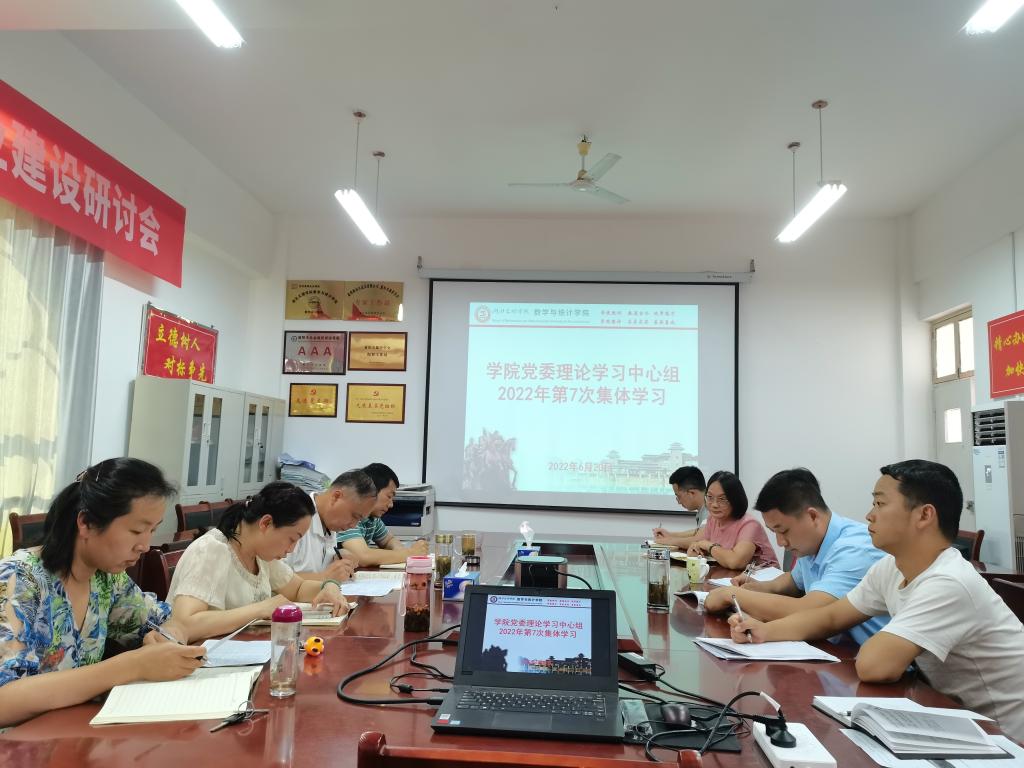 举行党委理论学习中心组2022年第7次集体扩大学习。学院领导班子成员、党委委员、党支部书记、三办主任、团委书记、辅导员参加会议,会议由学院党委书记刘浩主持。