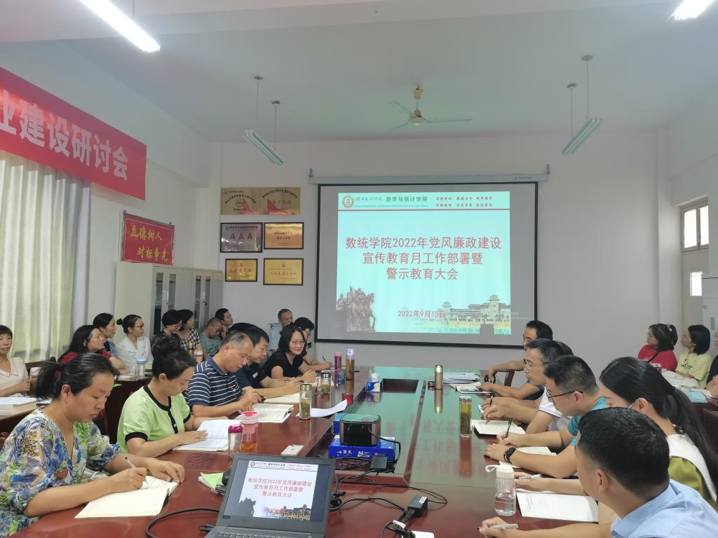 在学院会议室召开2022年党风廉政建设宣教月工作部署暨警示教育大会。学院领导班子成员、全体教职工参加,会议由学院党委书记刘浩主持。