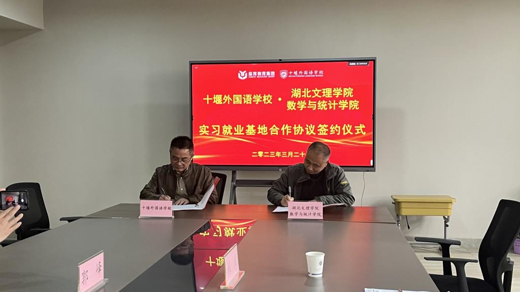 在十堰外国语学校,刘浩、王成勇一行受到学校董事长张朝荣等领导的热情欢迎。座谈会上,张朝荣介绍了学校的基本情况、发展历程、用人情况、学校招聘就业待遇等,希望双方加强联系、深化合作。王成勇介绍了学院的发展情况、专业设置、科研项目、校企合作情况、就业基地建设情况,希望双方加强交流合作,为毕业生提供实习和就业机会。刘浩、张朝荣代表双方签订实习就业基地合作协议。双方围绕联合培养师范人才、共建实习就业基地、拓展就业岗位等方面进行了交流。