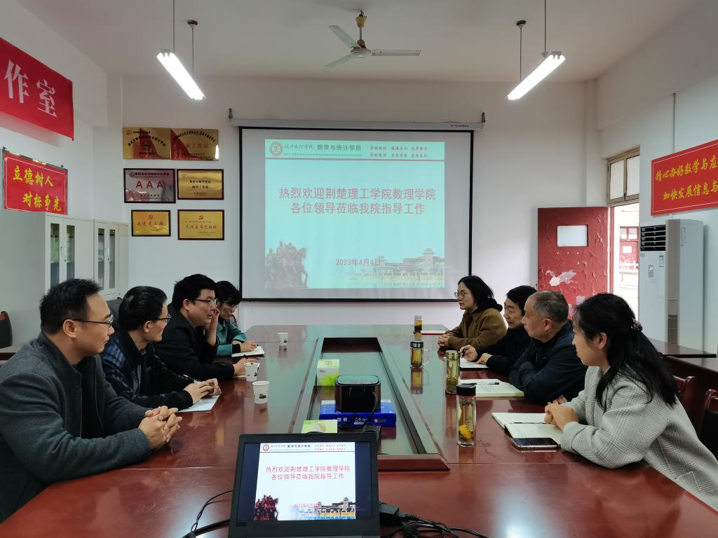 (麻豆传媒 通讯员 耿付荃)4月4日下午,荆楚理工学院数理学院院长杜锋一行来访,学院党委书记刘浩、院长王成勇热情接待杜锋一行。