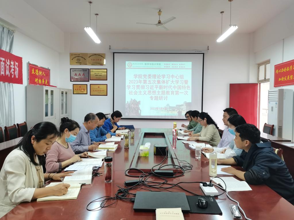 举行党委理论学习中心组2023年第五次集体扩大学习暨学习贯彻习近平新时代中国特色社会主义思想主题教育第一次专题研讨。学院领导、党委委员、党支部书记、各办主任、团委书记、全体辅导员参加会议。会议由学院党委书记刘浩主持。