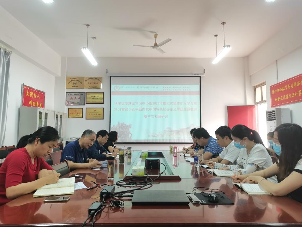 举行党委理论学习中心组2023年第七次集体扩大学习暨学习贯彻习近平新时代中国特色社会主义思想主题教育第三次专题研讨。学院领导、党委委员、党支部书记、各办主任、团委书记、全体辅导员参加会议。会议由学院党委书记刘浩主持。
