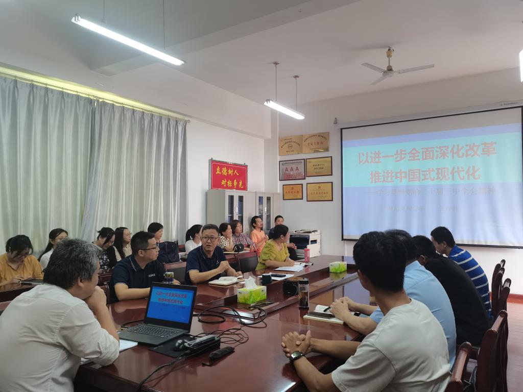 召开全体教职工大会,邀请学校学习贯彻党的二十届三中全会精神宣讲团成员、马克思主义学院副院长李双胜教授作宣讲报告。报告会由学院党委书记袁红星主持。