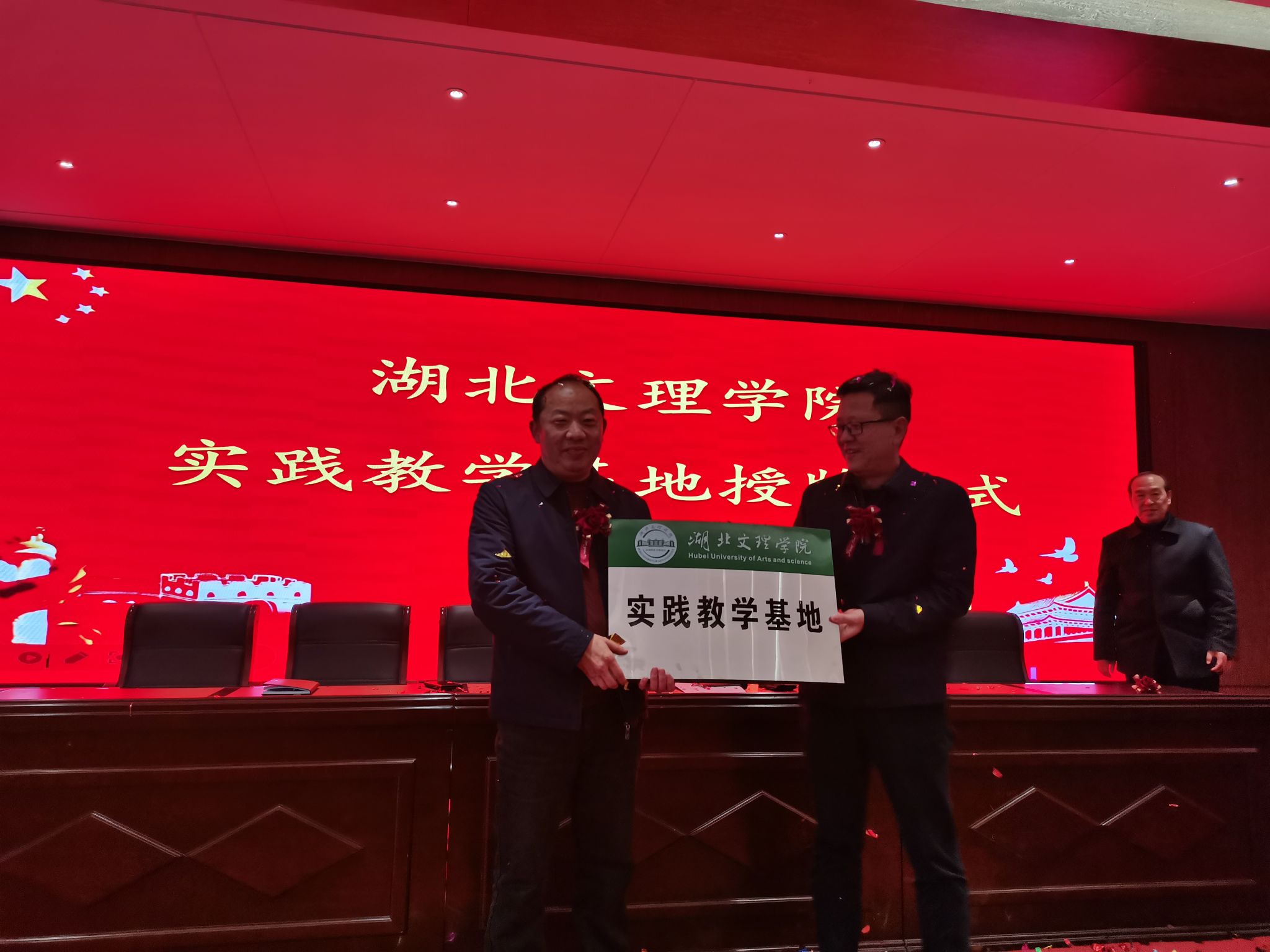 实践教学基地牌匾。此次授牌仪式成功举办,标志着双方开启了友好合作崭新篇章,迈上了新的台阶。