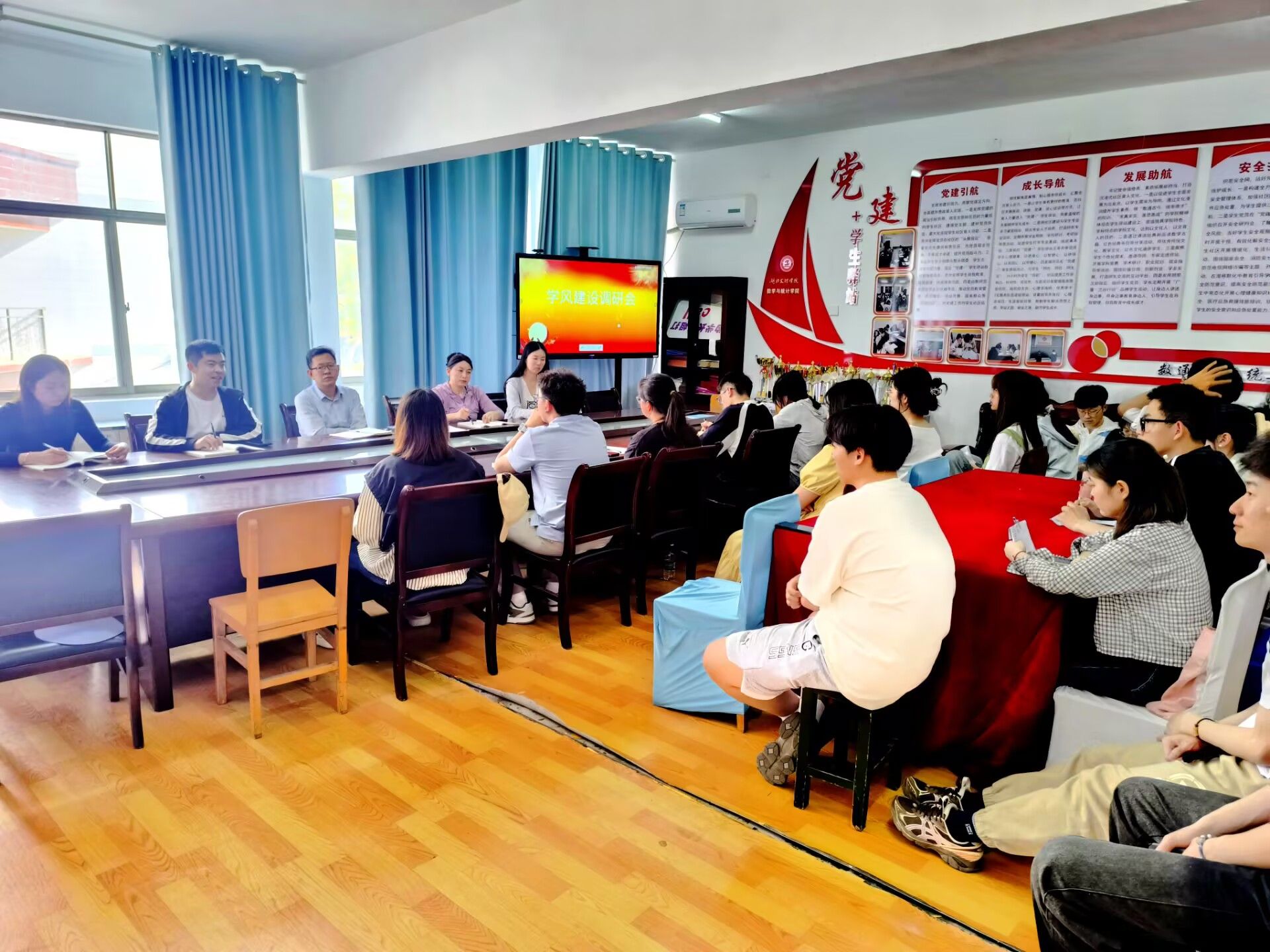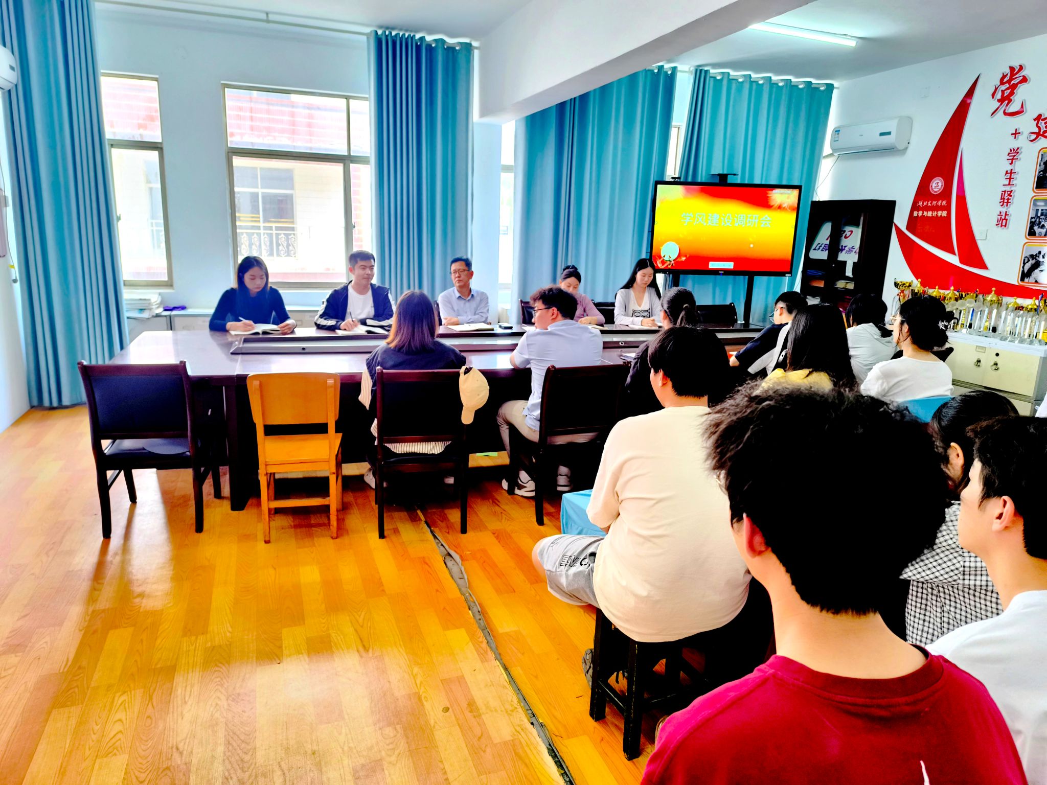 在学生公寓15栋“党建+”一站式学生驿站召开学风建设调研座谈会,学院党委书记袁红星、党委副书记姚威、全体辅导员及学生党员、班干部代表参会。座谈会由党委书记袁红星主持。