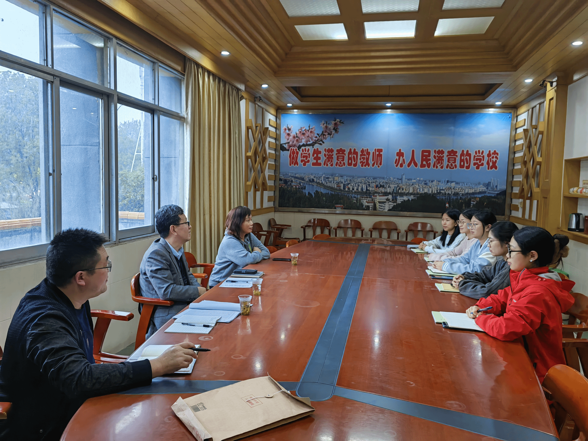 袁红星一行与各实习学校有关负责人进行座谈交流,向实习学校领导了解实习生情况,表达对实习学校的感谢。实习学校普遍对我院数学与应用数学专业2022级实习生的实习态度、工作热情、教学水平、工作能力等给予了充分肯定,同时也为我院学科发展及师范生人才培养等提出了宝贵建议。每到一处实习点,学院领导老师都认真听取实习学生的实习工作汇报,了解同学们在实习中遇到的困难与问题,并给实习生们提出诸多指导和建议。鼓励同学们珍惜实习机会,虚心学习、踏实工作、总结经验和不足、努力练就扎实的教学本领,特别对实习工作中的安全进行进一步强调。学院领导老师还对学生考研考编考公等形势进行分析指导,为学生后续毕业就业指明方向。