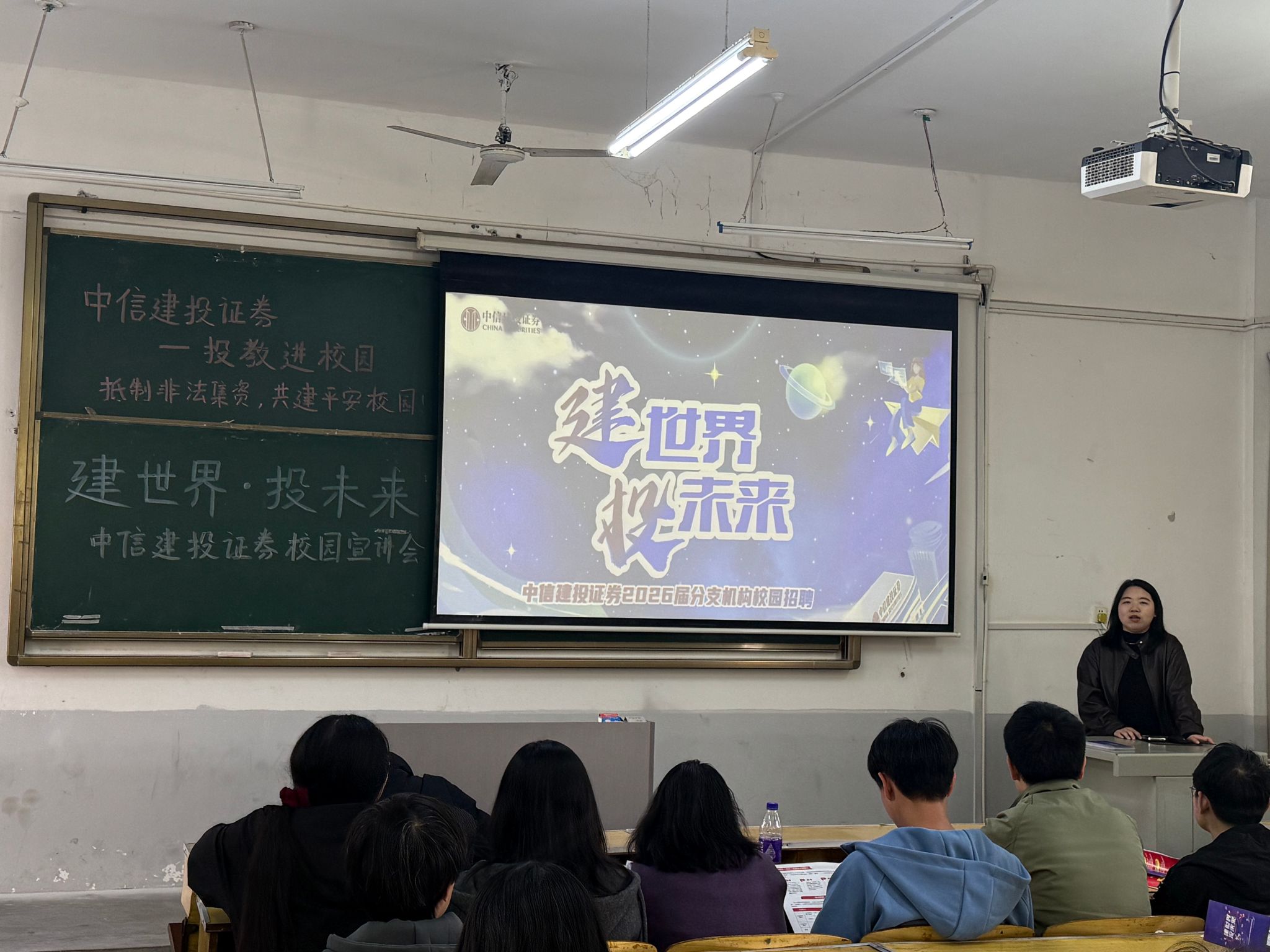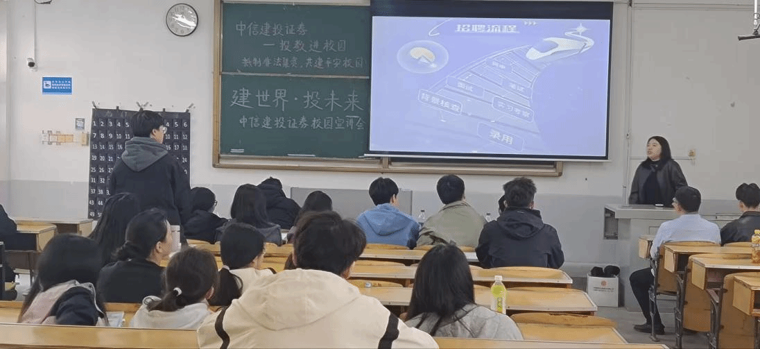 活动伊始,现场播放了企业精心制作的暖场视频,通过影像生动展现了中信建投证券的发展历程、业务版图与麻豆传媒。随后的宣讲环节,中信建投证券招聘负责人围绕公司概况、行业地位、人才培养体系、薪酬福利及本次招聘的岗位需求作了详细解读,帮助在场学生全面了解证券行业发展前景与企业招聘要求。
