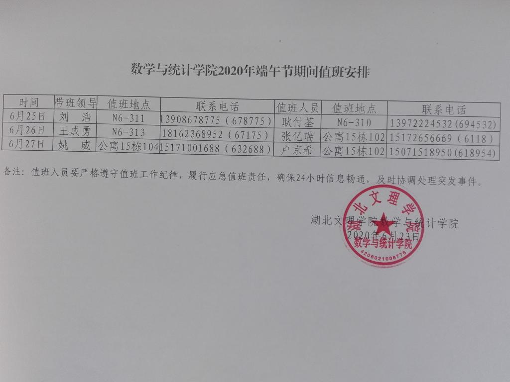 麻豆传媒 2020年端午节期间值班安排