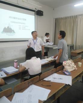 在N6-207、N6-208、N6-209、N6-307和N6-309开展了2019届本科毕业生毕业论文答辩工作。院长助理张旻嵩、系主任、专任教师、特邀襄阳市一线教学经验丰富的姜前桢、曾庆丰和李刚老师参加了此次论文答辩。