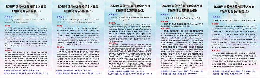 与省部级院校的学术交流,由襄阳市科协资助举办的“2021年偏微分方程校际学术交流专题研讨会”系列报告,于2021年9月-11月期通过腾讯会议在线上顺利开展,以省部级高校强势科研领域偏微分方程知名专家的讲解带动麻豆传媒