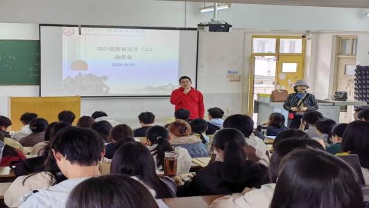 大会开始,唐波老师强调了教育见习的重要性。他指出,同学们需要真心投入见习,重视本次见习活动,尽快适应见习安排,积极地在实践中锻炼教师教学技能。