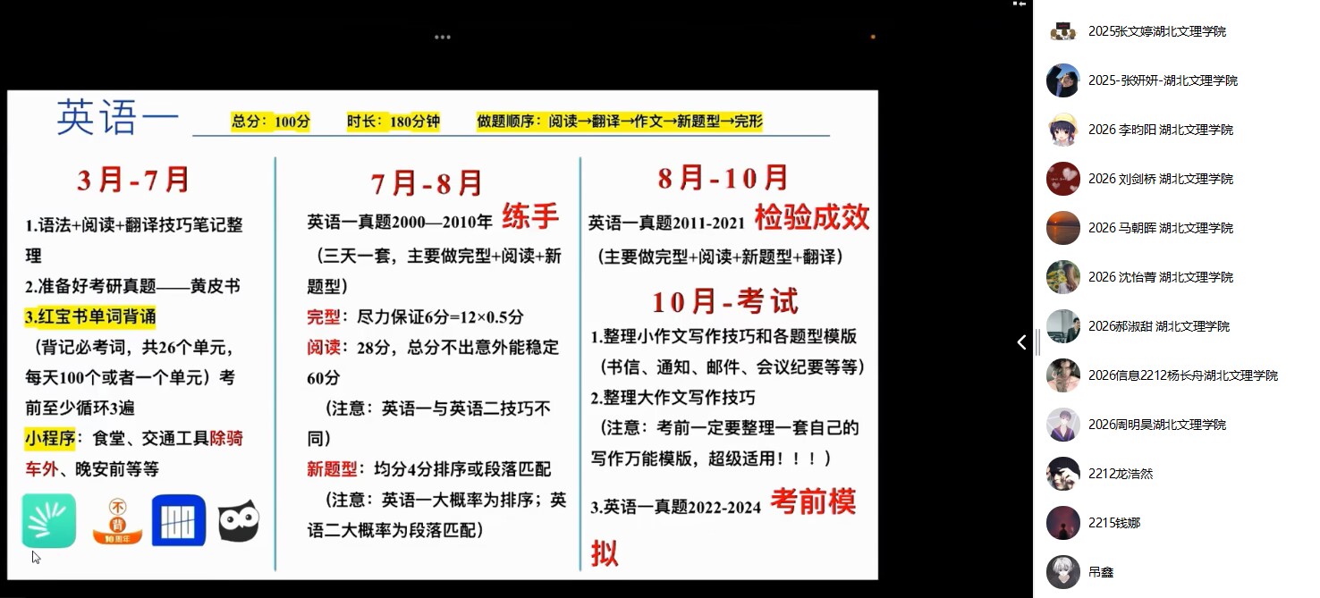 研究生)、杨志成(考取江西理工大学研究生)进行考研经验分享。
