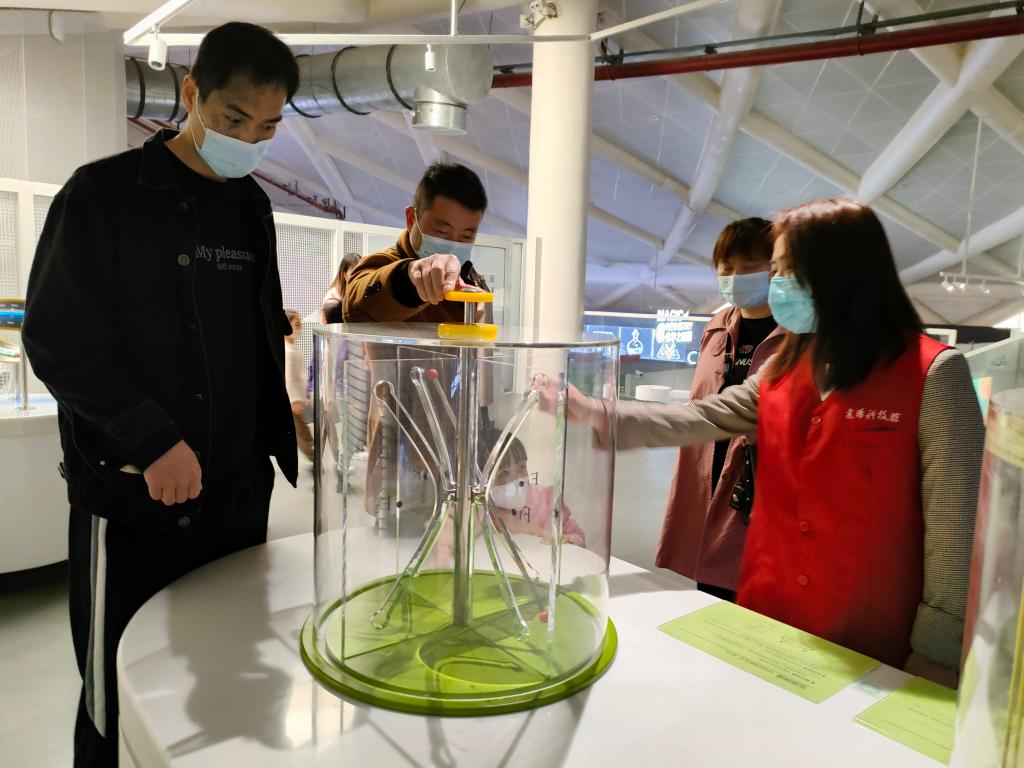 在数学展厅,志愿者们向襄阳市民们讲解莫比乌斯环,勾股定理,圆锥曲线等项目,并引导他们选择自己感兴趣的项目,动手试一试,体验数学世界的奇妙。