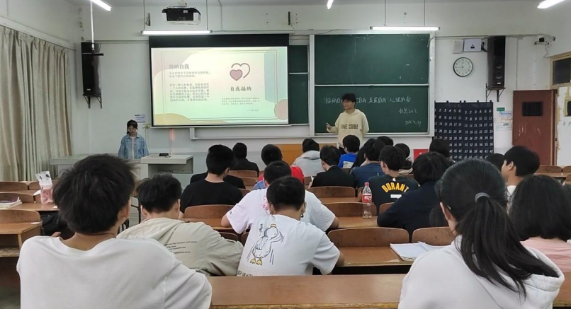 信息2112班于北区开展以 “悦纳自我,欣赏自我,发展自我”为主题的心理班会。此次班会由心理委员王思悦主持。