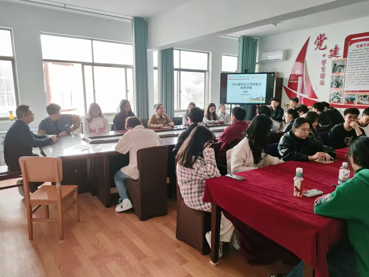 在党建+学生驿站举办2024届考研复试指导讲座。讲座由学院党委委员唐波博士主讲,参加此次会议的还有辅导员以及2024届、2025届考研学子。会议由学院党委副书记姚威主持。