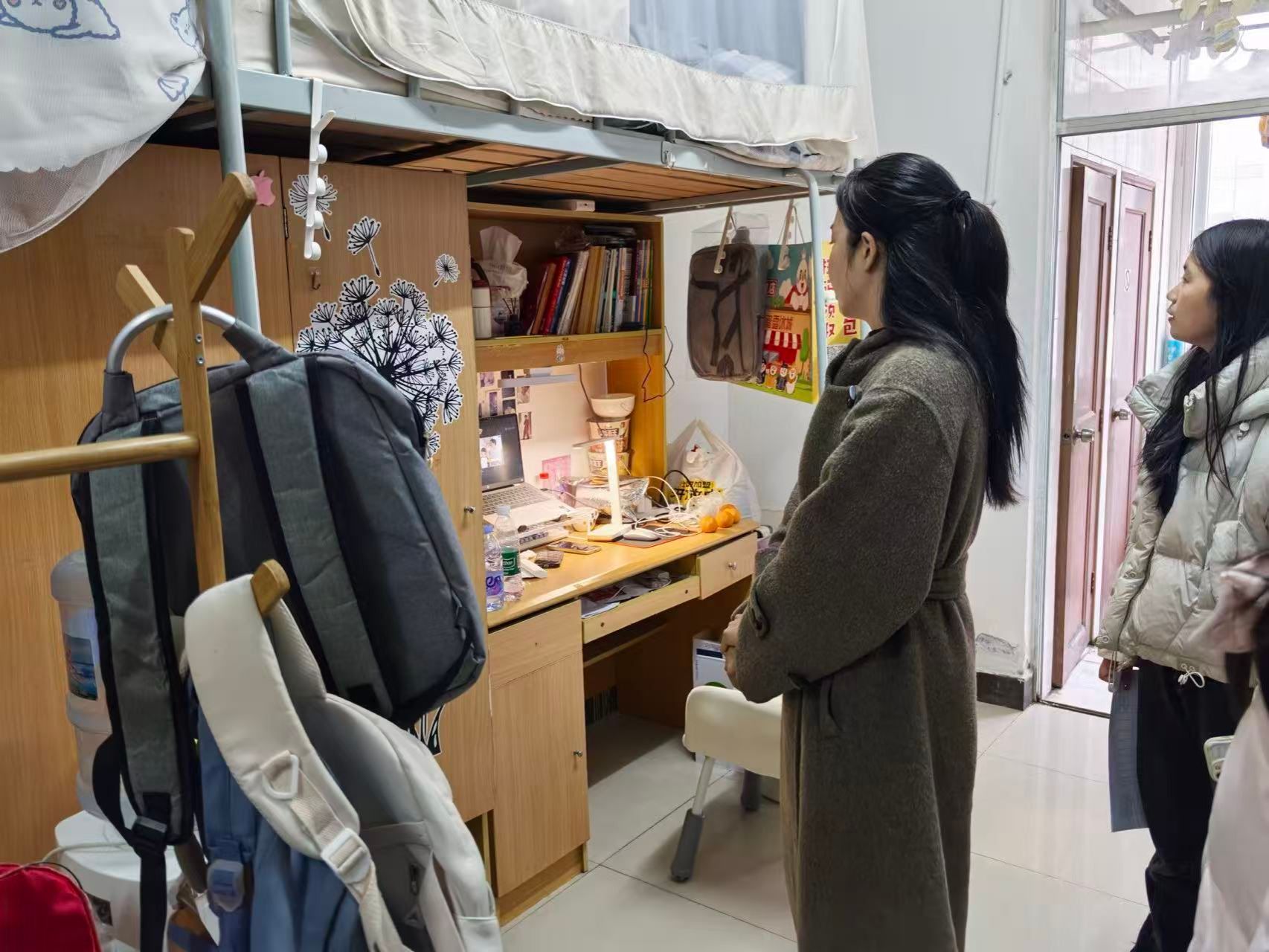 走访过程中,辅导员们仔细查看了宿舍的住宿环境、卫生状况和安全设施,提醒同学养成良好的作息和卫生习惯,营造整洁、舒适、安全的住宿氛围,并现场记录、回应学生关于设施维护的诉求。
