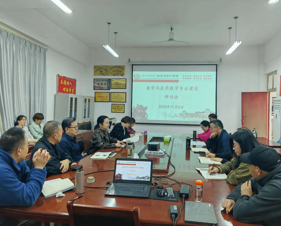 通讯员 秦佳茜)为提高数学师范专业人才培养质量,进一步推进专业建设,为襄阳都市圈输送符合中学需求的、高水平师范人才,2025年11月6日,学院举行数学与应用数学专业建设研讨会,邀请襄阳市第七中学副校长袁再彦来院交流专业建设工作。学院党委书记袁红星、院长丁凌和数学系全体教师参加了会议。会议由数学系党支部书记肖氏武主持。